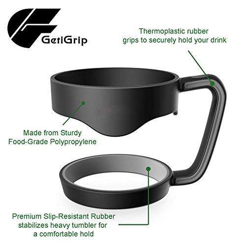 Product Description Handle for 30 oz tumblers, including YETI and RTIC. Your favorite Stainless Steel cup can FINALLY fit in your hand without straining your wrist! Perfect accessory for your 30oz tumbler! 0