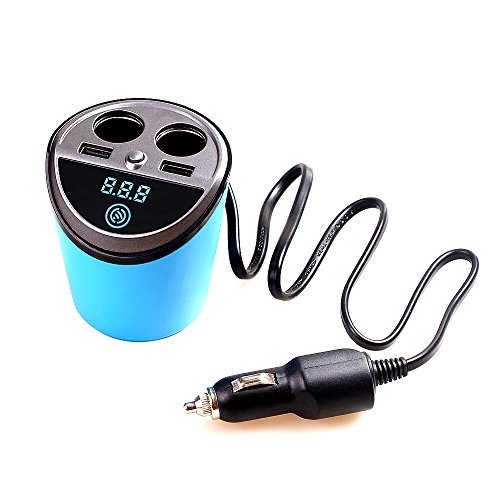 -. Feature : It is designed to adapt to your car or truck's cup holder, which makes your car much neater. it can use your car space reasonably. / Compact design with LED display monitoring your car battery. When car voltage is beyond the normal range. / 65CM length of cable,it is long enough to get the power from car original cigarette lighter. / This cup charger could be used as a dual USB car charger with 2 cigarette lighters. 4 outlets create the perfect charging hub on the go for you as well as your family members. / Built-in replaceable fuse 10 amps and protective circuits, high quality components prevent the product or your devices from overheating or overloading. Charging will stop automatically when battery is full.
