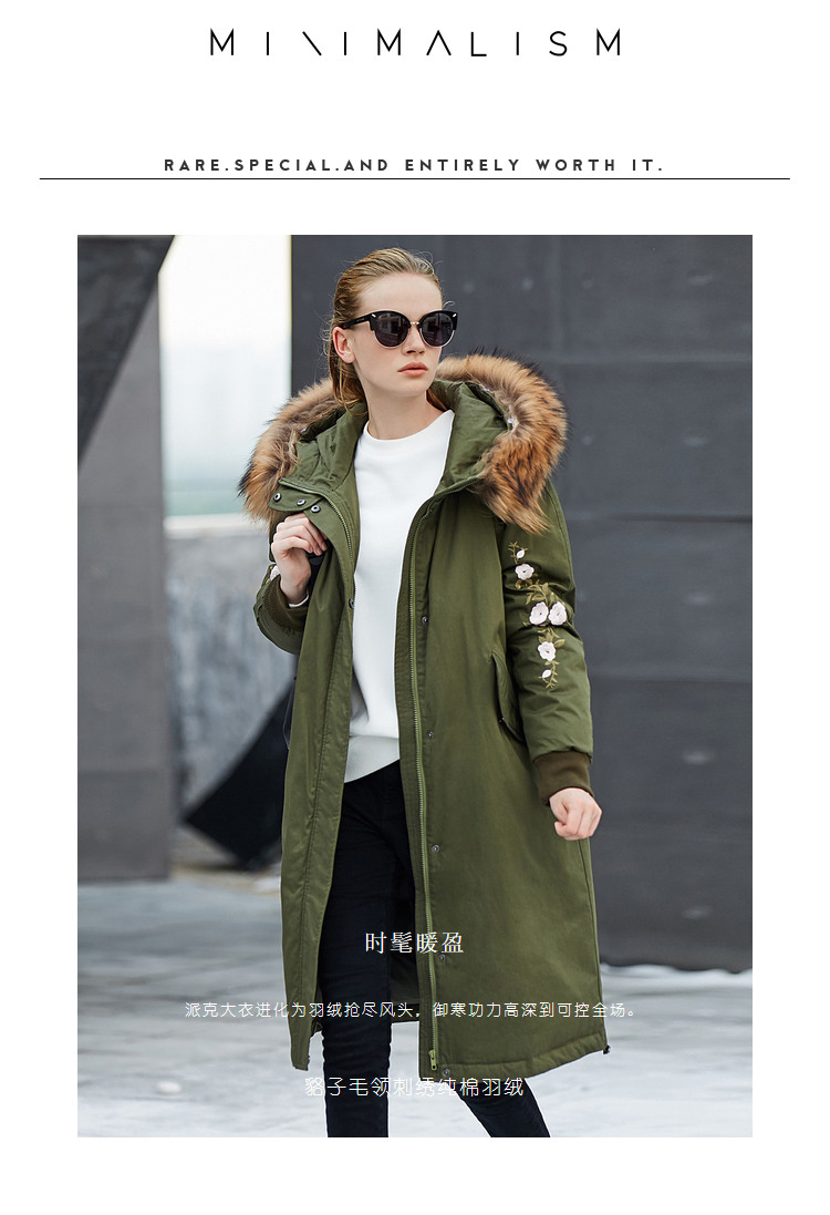 | 面料成分: | 面料:100%棉 里料:100%聚酯纤维 胆料:100%聚酯纤维 毛领:貉子毛皮 帽子填充物:100%聚酯纤维 |