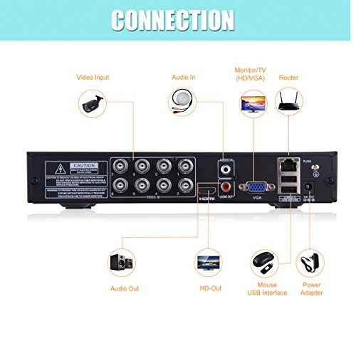 Easy Local/Remote Access: connect your devices and your DVR via Internet with P2P technology; live viewing remotely with IE browser, Windows CMS software and Android, iOS App; recording continuously to hard drive (not included) supported