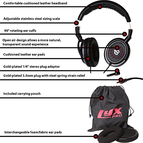-. Title : LyxPro OEH-10 Open-Air Headphones Hi-Fi Audiophile Over-Ear Headphone, Interchangeable Cushioned foam/fabric Leather Ear Pads, Comfortable