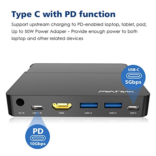 -. Feature : CHARGE & SYNC AT ONCE - This dock easy connects and charing for your laptop,like your MacBook, ChromeBook Pixel via a single USB-C port and gives you an HDMI port, two USB 3.0 ports, a USB-C downstream port. / ADD AN 4K HDMI ADDITIONAL MONITORS - Support VESA Alternate Mode, resolution up to 2K@60Hz or 4K@30Hz(USB 3.1 Gen 2 Type C SUPPORTED laptop ONLY) ideal for gaming or streaming movies. / SUPERSPEED PORTS - A USB-C (to host) data transfer speed is up to 10Gbps,20V/2.5A (50W) power delivery to your laptop.Two USB 3.0 Ports speed up to 5Gbps for more peripheral devices like keyboard, thumb drive. / PORTABLE AND FULLY COMPATIBALE - Aluminum material, foldable cover, stronger shockproof pad,the flip style design makes the Mini Dock so portable,and you can take it go and create a workstation wherever you need. Microsoft Windows/Mac OS X/ Chrome OS and hardware system comply with the USB-IF Power Delivery specification. / SATISFACTION GUARANTEED - Get the benefits of an 18-month warranty on your purchase of our USB C mini docking station.