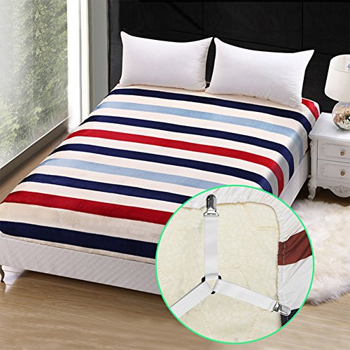CoZroom Triangle Bed Sheet Fastener Adjustable Holder Straps for a Smooth Mattress, Pack of 4, White