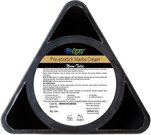 Studio : GoAyur Publisher : GoAyur Binding : Health and Beauty Product Description Stretch marks are thick red or deep lines that appear when the underlying body tissues grow faster than the skin on top. GoAyur pre-stretch marks cream is an effective way that helps prevents stretch marks. It gives extra moisturizers, nourishment to the skin which helps to improve skin elasticity and resilience. This Ayurveda anti stretch marks cream has known to prevent all signs of stretch marks pesky lines from forming also helps to promote skins cell renewal, regeneration increase collagen production to make skin soft and supple. The special blends of pure organic herbs, natural ingredients, essential oils go into making the GoAyur neem tulsi pre-stretch marks cream, which is your skin's perfect defense against the onslaught of stretch marks. The goodness of aloe vera juice and essential oils help prevent stretch marks and enhance the skin's capacity to stretch. Turmeric is nature's very own antiseptic that heals and brings a new glow to the skin. Lodh helps reduce marks and blemishes while Rubbia cord folia improves blood circulation to enhance the effect of these herbs. Suitable for all skin types 0