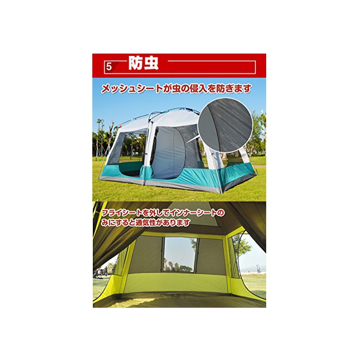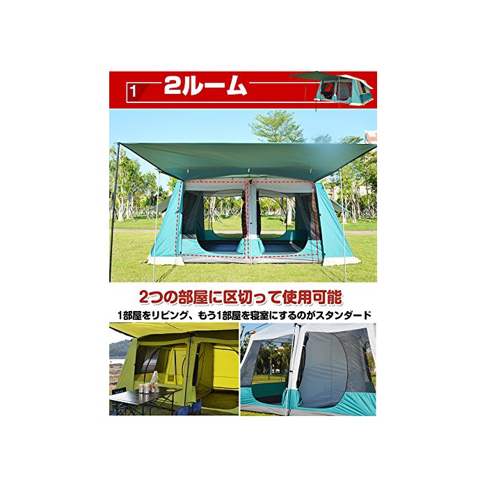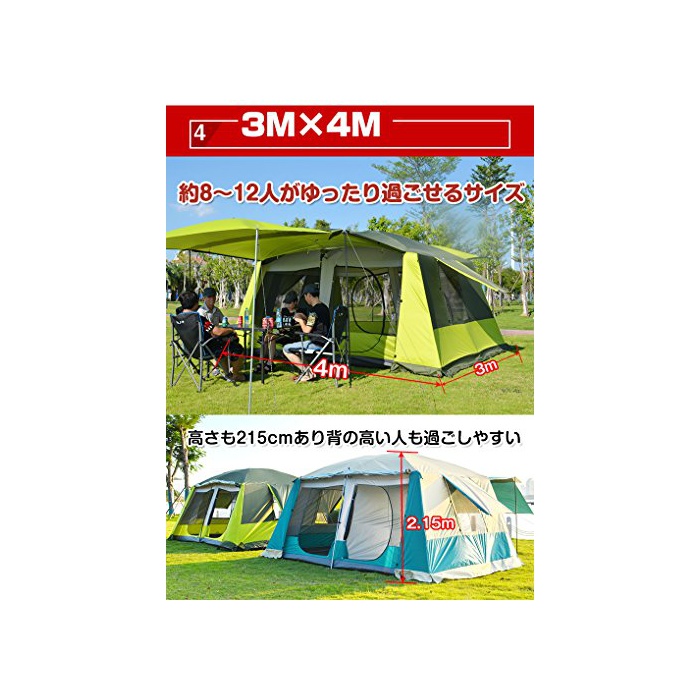 원본상품명: ツルムテント 全2色 300cmx400cmx215cm 2ルム UV50+ 防 通性 耐水3000mm 納袋付き [5-6人用] [8-12人用] [行輸入品]