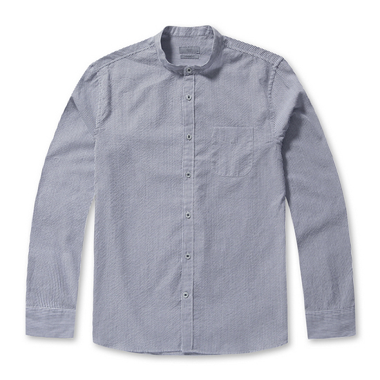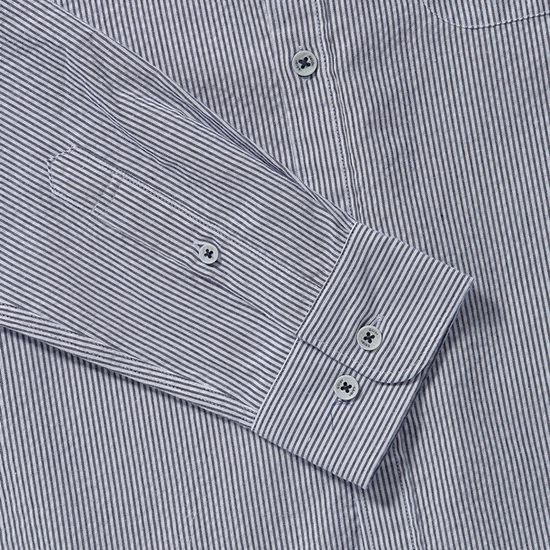 - 핀 스트라이프 패턴의 단정한 남성 셔츠.