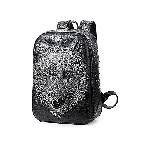 -. Title : JJJJHUA Unique Design Cool 3D Wolf Head Premium PU Leather Backpack Laptop Shoulder Bag