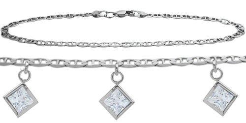 -. Title : 14K White Gold Mariner Anklet with Genuine 1.95 Carat White Topaz Square Charms