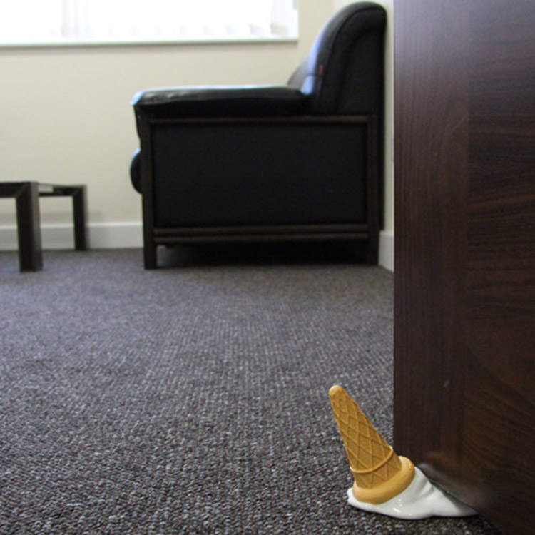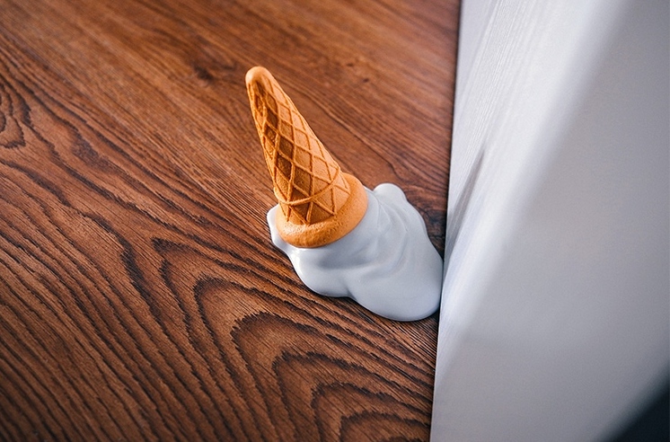 ・ソフトクリームを落とした形状のドアストッパーです。ジョーク雑貨として皆んなを驚かせてみましょう。