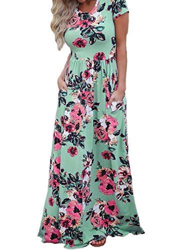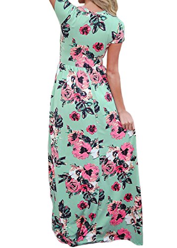Women's Short Sleeve Printing Dress Round Neck Boho Plus Size Long Maxi Dress for Beach Party Green M