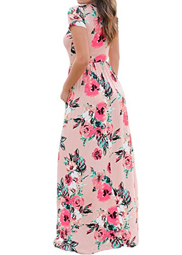 Women's Summer Round Neck Floral Maxi Long Dress Pink XL