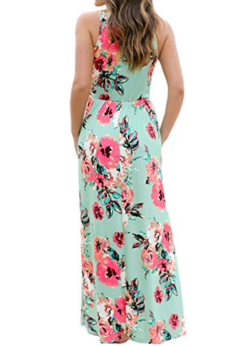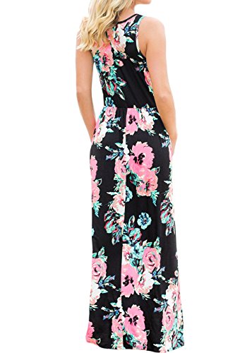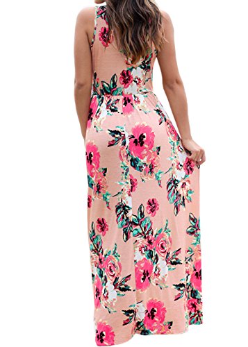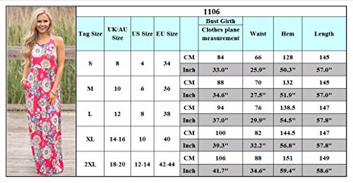 Ruiyige Women Floral Print Racerback Casual Tunic Long Maxi Dress Tank Dress with Pocket Rose Red L