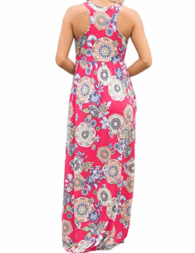 Ruiyige Women Floral Print Racerback Casual Tunic Long Maxi Dress Tank Dress with Pocket Rose Red M