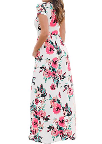 Women's Elegant Floral Short Sleeve Summer Beach Long Maxi Dresses White M
