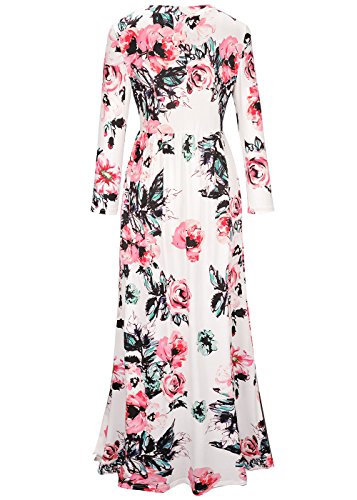 Ruiyige Floral Printed Retro Vintage Long Dress White L