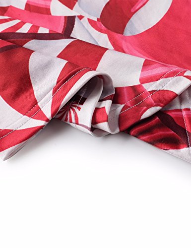 Women Floral Print Racerback Casual Tunic Long Maxi Dress Tank Dress with Pocket Rose Red XL