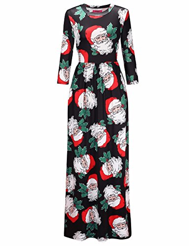 Ruiyige Women's Xmas Santa Claus Print Christmas Dress Maxi Dress