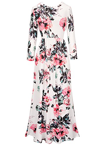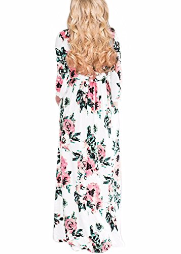 Women's 3/4 Sleeve Spring Flower Casual Floor Length Maxi Dress White XL