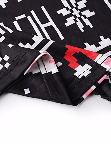 Women O-Neck Short Sleeve Floral Print Midi Maxi Party Beach Dress Black XL