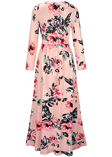 Women's Floral Print Long Dress Long Sleeve Empire Flower Maxi Dresses Pink L