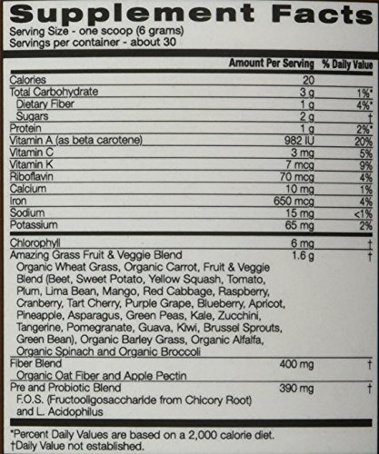 Amazing Grass has combined fruits and vegetables to bring a new and tasty way for kids to get the anti-oxidant power of 3 servings of fruits and vegetables in just one glass. We’ve used a quick-drying, low temperature, nutrient-preserving method to make a fruit and vegetable powdered drink that mixes easily with water, juice or milk to provide your child with a fast, delicious way to drink up the healthy benefits of a variety of fruits and vegetables.Feature