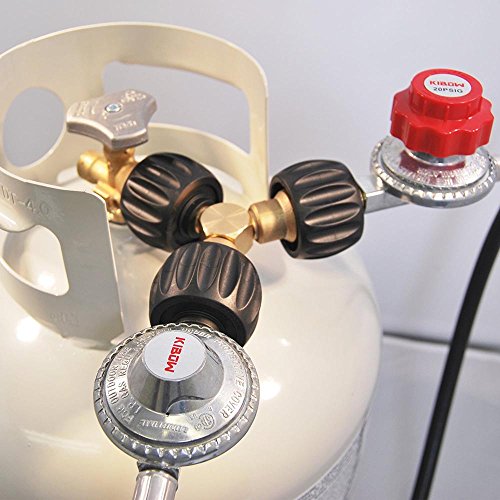 ECONOMICAL- This Y-splitter can connect TWO regulators or hoses to ONE propane tank, which allows you to run two cookers with one tank at the same time. It can also be used when only one hose connected. Save your money. Don't need for an extra propane tank.