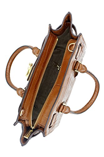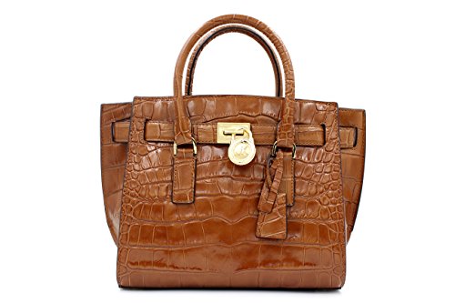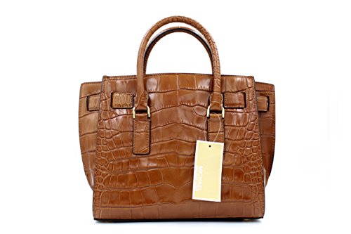 MICHAEL Michael Kors Hamilton Traveler Walnut Nile Crocodile Embossed Leather Medium Satchel
