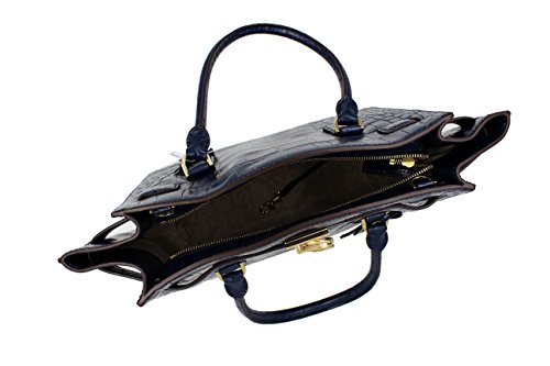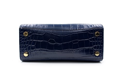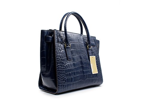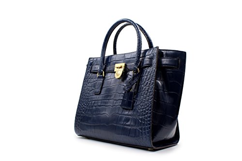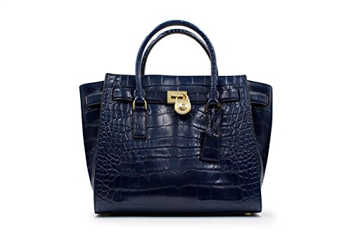 MICHAEL Michael Kors Hamilton Traveler Navy Nile Crocodile Embossed Leather Large Satchel