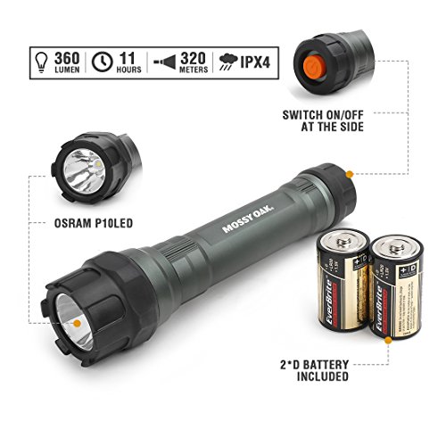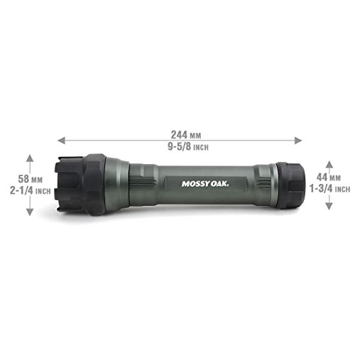 MOSSY OAK Tactical LED Flashlight, Bright Torch 360 Lumens, 3 Modes, Water Proof IPX4, Shock Proof 27-Feet, 2D Batteries Included, Green