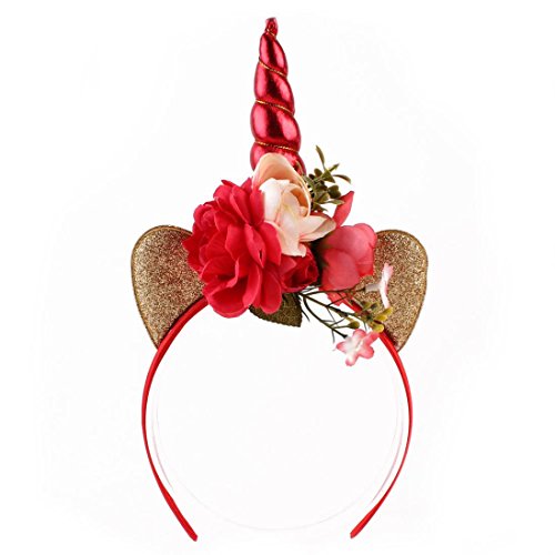 Gold unicorn horn, glitter ears with flowers headband