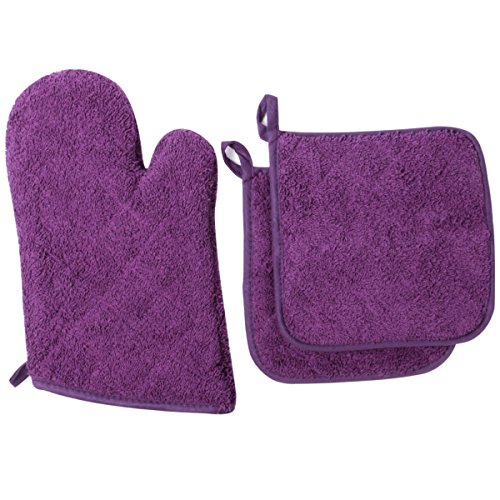 100% Cotton Everyday Kitchen Basic Heat Resistant Oven Mitt and Pot Holder Set, Grape