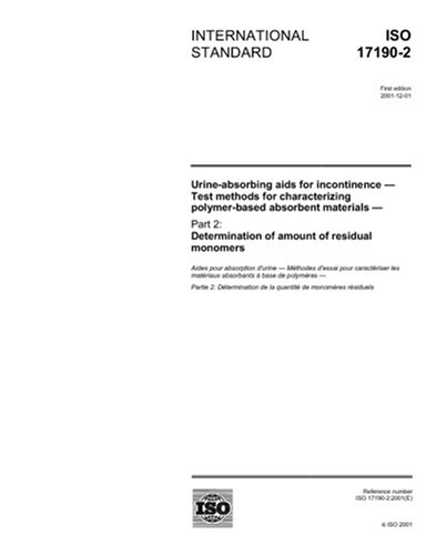 ISO 17190-2:2001, Urine-absorbing aids for incontinence - Test methods for characterizing polymer-based absorbent materials - Part 2: Determination of amount of residual monomers