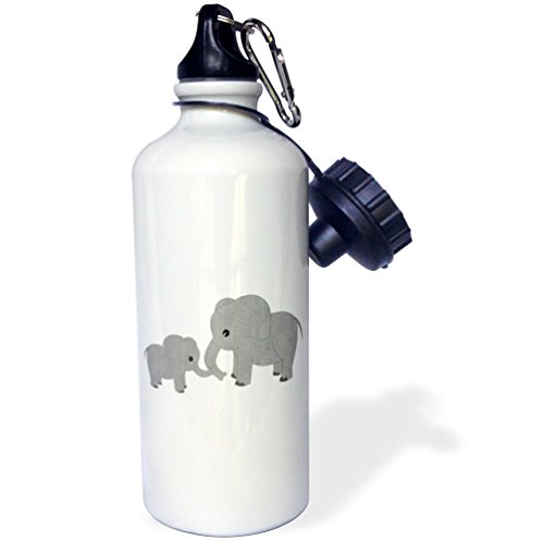 3dRose Mom and Baby Elephant Sports Water Bottle, 21 oz, White