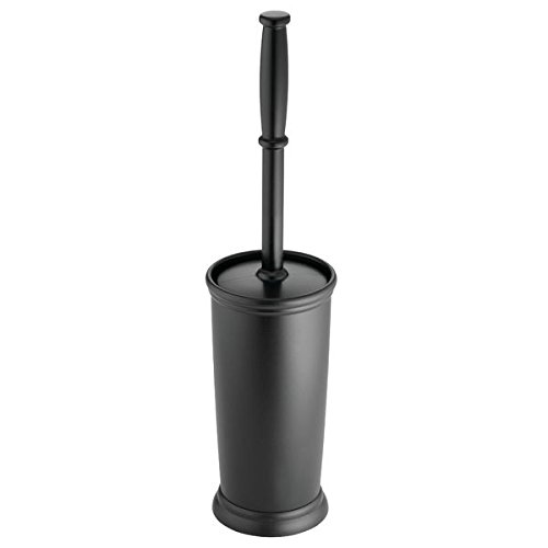 Sleek holder neatly and discreetly conceals bowl brush when not in use; Stiff plastic bristles clean under toilet bowl rim; Black brush head is removable for replacement