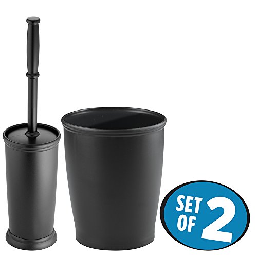 mDesign Wastebasket Trash Can, Toilet Bowl Brush with Holder for Bathroom Storage - Set of 2, Black