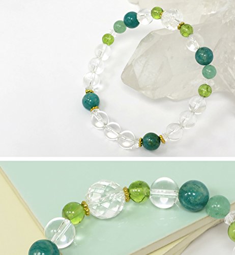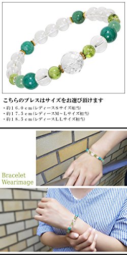 상품 데이터 ●크기전개 약16.0cm(레이디스S크기상당) 약17.5cm(레이디스M~L크기상당) 약18.5cm(레이디스LL크기상당) ●비즈 일람 배 re 도트 약6mm 4알 아마츄어《조나이토》 약8mm 4알 《아벤추린》 약6mm 2알 컷 수정 약10mm 1 옥수정 약8mm(옥수는크기에 의해 다릅니다) 평컷 수정 6알 메탈 파트(금색) 6개 실리콘 고무 사용