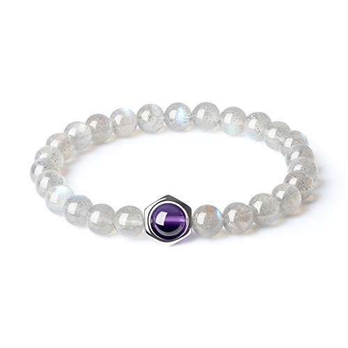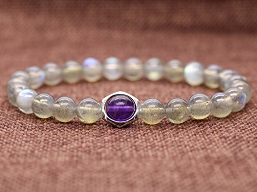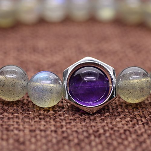 원본상품명: (アモ?ルウィング)AmorWing 7mmラブラドライト アメジスト 二月誕生石 プラチナメッキ銅製六角形 心願成就お守りブレスレット 腕輪?珠 メンズ レディ?ス