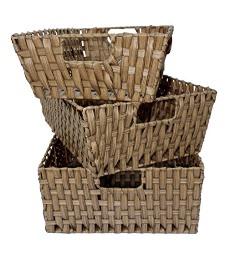 Decorative nesting woven polypropylene storage baskets set of 3 (Greyish brown, PP)