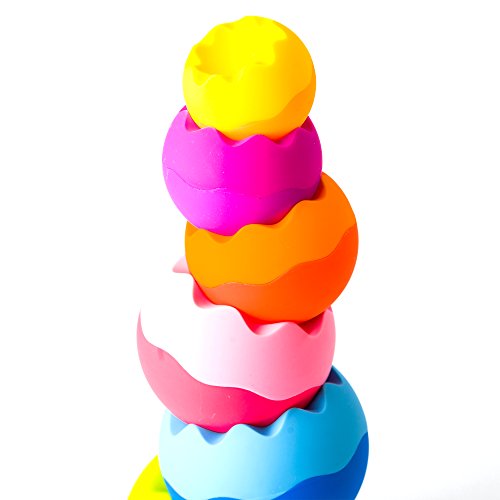 2012 TIA Toy of the Year Finalist Tobbles has a younger sibling -Tobbles Neo! Tobbles brought you bright and cheerful colors enhanced by the physics of motion. Tobbles Neo steps in - with the addition of more tactile clout! The unique grippable texture of Tobbles Neo awakens touch. See those gentle, playful curves? They truly enliven tactile experiences. Young minds revel in stacking, toppling, and the discovery of endless ingenuity with Tobbles Neo. Six uniquely weighted pieces balance, neatly nest, and incessantly spin beyond your expectations. Gratifying to hold in your hands, weighted to invite investigation, and likely to be swiped from your possession. Little hands can't get enough of the stacking, toppling, spinning, balancing, wobbling, tilting, and wiggling! Another welcome invitation to timeless play. Tobbles Neo amp;middot;Innovative creative play matched with modern design amp;middot;For sensory exploration, fine motor skills, coordination, visual spatial acuity amp;middot;Dynamic play potential - stack, topple, spin, balance, wobble, tilt, wiggle, roll amp;middot;Physics interplays with design perfection - Looks good, plays even better amp;middot;Dual-color, unique grippable texture, playful curves enliven tactile experiences amp;middot;Ideal for busy, curious children amp; beloved by playful adults amp;middot;Six vibrant, weighted pieces for delightful experimentation amp;middot;Includes 6 vibrant, weighted spheres amp; stacking base amp;middot;A design-savvy, functional conversation piece amp;middot;Highest quality construction amp;middot;Fully safety testedFeature