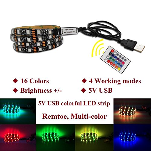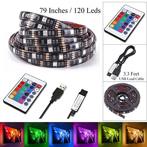 LED Strip Lights, Yesee 6.6 FT / 2 Meter 120 Leds USB Strip Lights with Remote,16 Colors RGB 5050 Backlight Flexible Strip Lights with 3M Adhesive.(79 Inch)