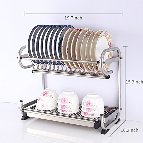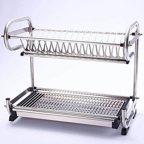TIANG- Dish Drying Rack Made Of Premium 304 Stainless Steel Dish Drainer, Kitchen Utensil Holder (2-Tier)