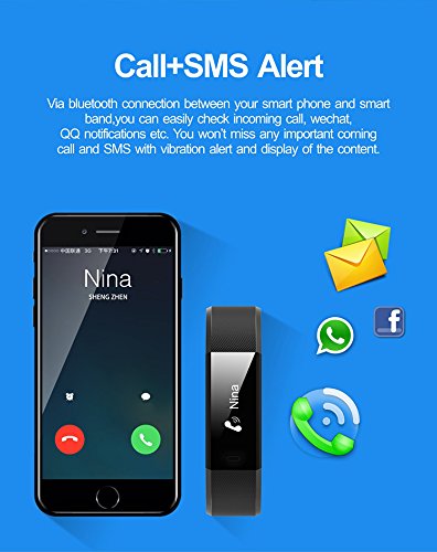 -. Title : Sizet Fitness Tracker Waterproof Smart Bracelet Heart Rate Monitor Activity Tracker Pedometer Smart watch Calorie Counter/Sleep Tracker Call Notification Push Remote Camera for iPhone iOS and Android