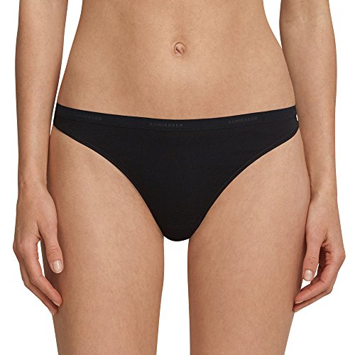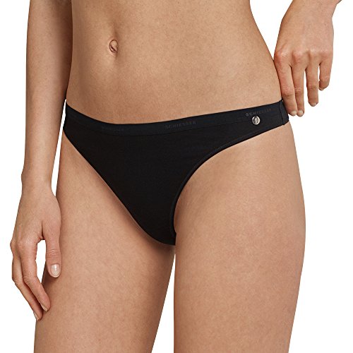 schwarzer String fur Damen aus der beliebten SCHIESSER-Serie "95/5" mit besonders flachen Nahte - ideal unter enganliegender Kleidung supersofter Bund fur hochsten Tragekomfort mit rundem 95/5-Metall-Anhanger am Bund in seidigweicher, elastischer Single-Jersey-Qualitat