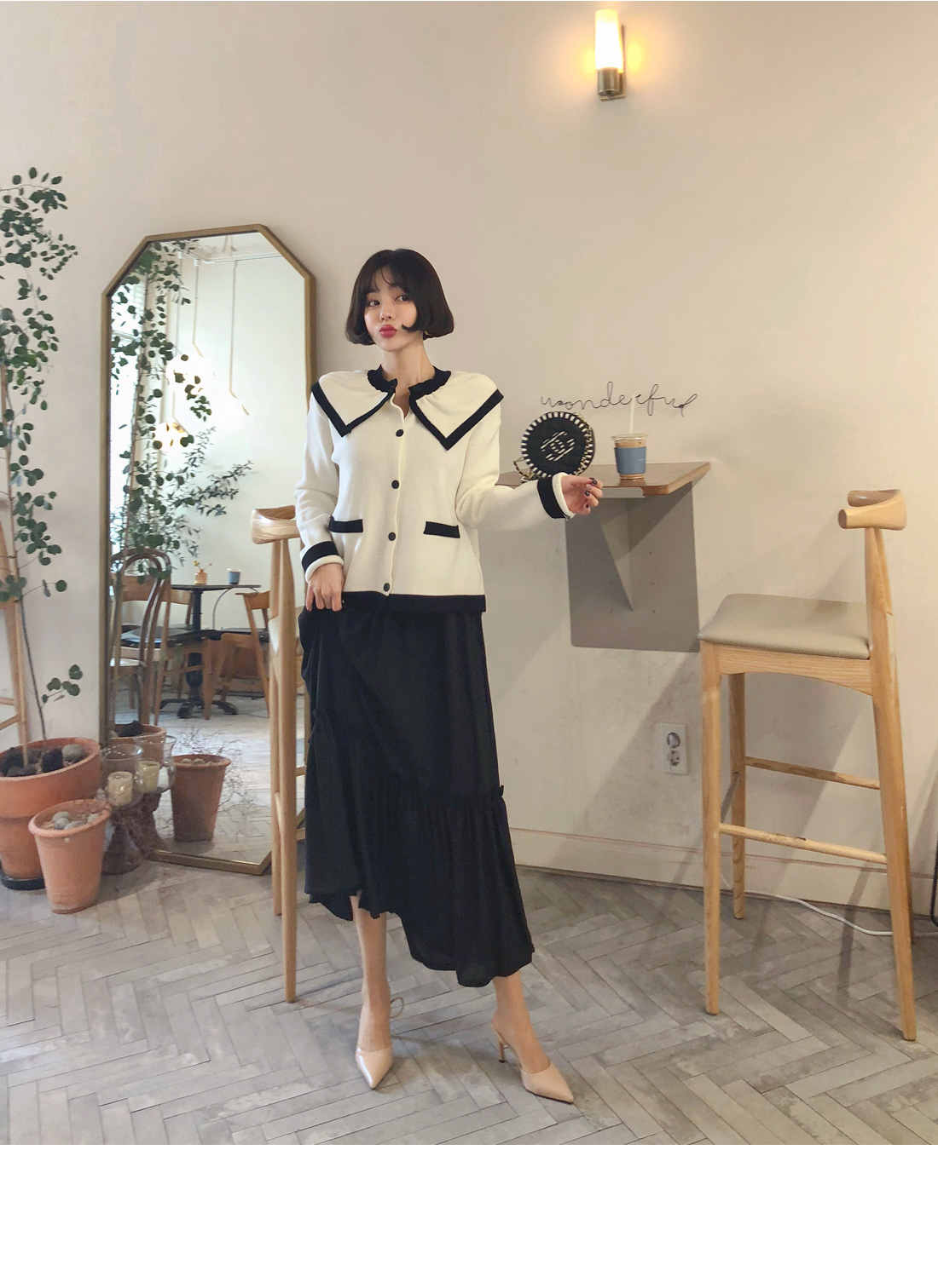 MD COMMENT 트렌디한 포인트가 되어줄 나시 원피스 입니다4계절 내내 활용도 높게 코디하기 간편한 나시 원피스 디자인으로니트나 , 가디건 등과 함께 코디하기 좋구요슬리브리스 형태의 디자인으로 제작되어 바디부분은면소재로 디자인되어 신축성이 있구요허리 아래로 폴리 소재감으로 촤르르 떨어지는 A라인 롱 원피스 디자인으로 분위기 있게 착용 가능해요 .바디에 핏 되지 않은 여유있는 핏 감과롱한 기장감으로 체형 커버를 도와주며,밑단 프릴 디테일이 더해져 여성스러운 분위기를한층- UP 시켜준답니다안감이 따로 없는 점 구매전 참고해주세요 :)포인트 있는 룩으로 자주 손이갈 아이템으로 추천해요!COLOR/SIZE 블랙,아이보리FREEMODEL FITTING 블랙/FREE