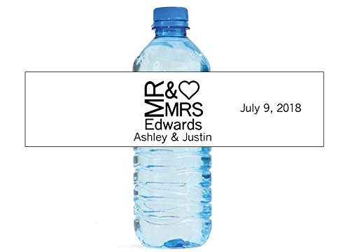 100 Mr & Mrs Heart Elegant Wedding Anniversary Engagement Party Water bottle labels, easy to use self stick