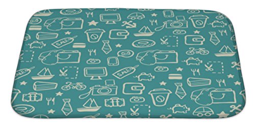 Gear New No Slip Microfiber Memory Foam Blue Shopping Pattern Bath Rug Mat, 34" X 21"