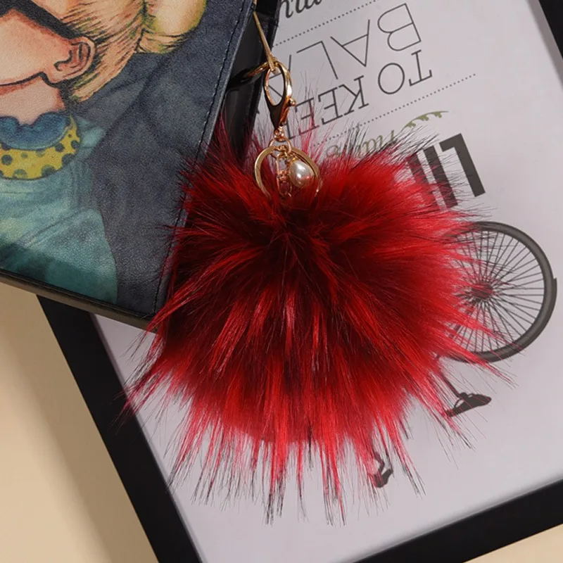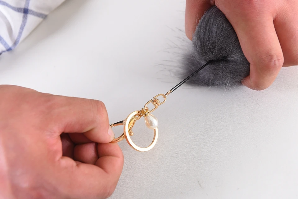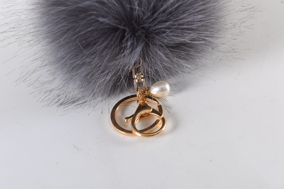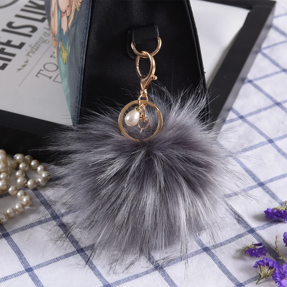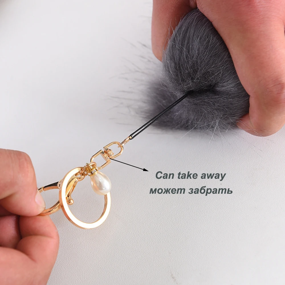 Style:Long Fur Ball & Golden Plated Key Ring ( Removable) & Imitation pearls