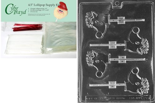 - Kit Contains: 25 Cello bags, 3.75" x 6.25", 25 Lollipop Sticks, 25 Red Twist Ties, Molding Instructions