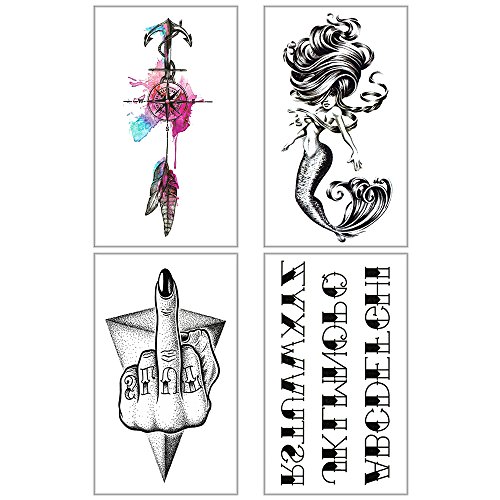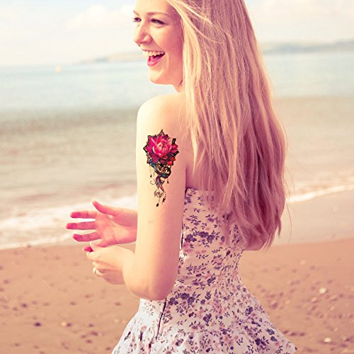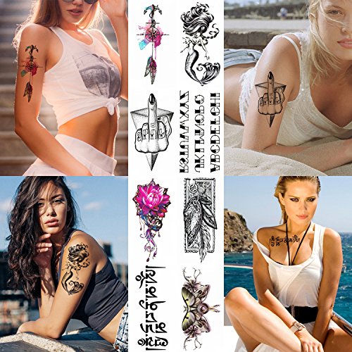 - 【8 LARGE SHEETS OF DIFFERENT TATTOO DESIGNS】- Includes: Flower, Rose, Hands, Mermaid, Butterfly. Use several tattoos to create full arm sleeve. SHEET SIZE: 6"X 8"