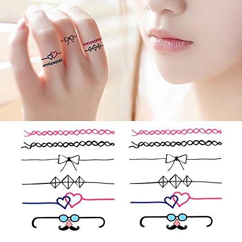 Oottati Small Cute Temporary Tattoo Bow Ring Lovers Heart (Set of 2)